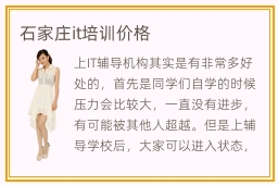 上IT辅导机构其实是有非常多好处的,首先是同学们自学的时候压力会比较大,一直没有进步,有可能被其他人超越。但是上辅导学校后,大家可以进入状态,学习很多新知识,而且有许多志同道合的同学陪伴着,大家不会感觉到孤单或者枯燥乏味。以前it辅导机构的类型比较少,可选择范围也很小,但现在每隔几年就有大量的it培训机构出现,所以大家选择更广,不了解到底哪个更好,很难作出决定。石家庄it培训价格大概是在8000到26000,一些基础不太好的学生可以看看it教学入门内容,费用在8000到10000之间。it在线教学的作用主要体现在网络资源非常丰富,没有地点限制,大家可以与来自四面八方的老师交流,拥有更多的选择。其次在互联网的背景下,同学有机会在家上课。