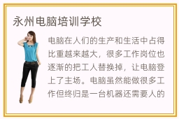 电脑在人们的生产和生活中占得比重越来越大,很多工作岗位也逐渐的把工人替换掉,让电脑登上了主场。电脑虽然能做很多工作但终归是一台机器还需要人的操作才能更好的被人类所驱使。所以懂得电脑操作电脑的人变得很受欢迎。正因为如此,很多人选在走进永州电脑培训学校,让自己掌握这门技术,争取得到更好的工作机会更高的薪资报酬。永州计算机培训中心很多,但是还是显得供不应求,很多人因为自己想报的专业名额已满只能遗憾的等到下个学期。好就业的永州电脑培训学校已经成了人们的共识,正是因为有了这个印在人们心中的标签,才使得很多人不惜从外地甚至是千里迢迢赶过来报名入学永州电脑培训学校。所以此刻迷茫不知前途在何方的你,勇敢的走进来让自己掌握这一技之长吧。