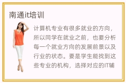 计算机专业有很多就业的方向,所以同学在就业之前,也要分析每一个就业方向的发展前景以及行业的状态。要是学生能找到这些专业的机构,选择对应的IT辅导课程,未来进步空间会非常大。现如今社会比较看中人才的专业技术。与此同时,市面上也出现了很多关于it方面的培训机构;但是it培训行业的发展水平并不是很持平,培训机构之间的发展良莠不齐,导致很多学员错误的选择培训班,从而浪费精力和财力。南通it培训学校的目标非常明确,就是要帮助同学掌握基础知识,改善应用的能力,在工作上有更多竞争机会。南通it培训班有细致的教学内容,随时调整学习的节奏,弥补这些漏洞,只要同学在学习时有任何疑问和难题,都不用担心,老师会一步步解决。