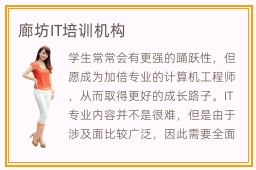 学生常常会有更强的踊跃性,但愿成为加倍专业的计算机工程师,从而取得更好的成长路子。IT专业内容并不是很难,但是由于涉及面比较广泛,因此需要全面的把握,才能取得好的应用成绩,不过也有很多专业的IT培训机构并没有这方面的培训课程,因此学生在找培训班之前,要了解清楚各种培训班的课程比例。所以越来越多的人都选择到廊坊it培训进行学习电脑技术,因为在廊坊it培训可以学到专业的电脑技术,而这些专业的知识可以帮助学员们找到一些不错的工作,所以这些学员才会选择廊坊it培训。廊坊IT培训学校的教学质量好不好。廊坊IT培训费用主要有IT培训培训质量以及教育的成果等等来确定。有很多同学都想在it专业领域获得优势,但实践应用能力不是很强,而且学习思维不够活跃,遇到问题没能及时解决,学习效果很不理想。