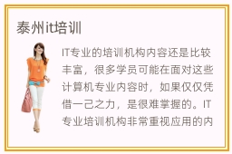 IT专业的培训机构内容还是比较丰富,很多学员可能在面对这些计算机专业内容时,如果仅仅凭借一己之力,是很难掌握的。IT专业培训机构非常重视应用的内容,如果学生不太懂得应用课程,缺乏理论知识的认识,可以参考泰州it培训机构的辅导内容,调整以后的学习方向和目标,轻轻松松掌握各种工作技能。学生能接触更多应用知识,也让视野更开阔,不会有太多学习方面的难题。但是一般情况都是属于市场的范围内,并不会有突然偏高或偏低的情况。it的前景怎么样,很多同学在专业人员的帮助下,都能找到满意的工作。若同学掌握不够充分,学习目标不够严谨,都可能被淘汰。为了获得更大的改善,大家可以多多了解一些优质的辅导班,找到适合自己的训练课程,一步步学习下去,应该会有更大的进步。