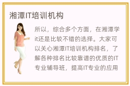 所以,综合多个方面,在湘潭学it还是比较不错的选择。大家可以关心湘潭IT培训机构排名,了解各种排名比较靠谱的优质的IT专业辅导班,提高IT专业的应用成绩。it行业的竞争有点激烈,因为计算机发展很快,技术人员越来越多,要求也逐渐增高,假如学生只停留在以前的学习进度,没有认真去学习新的内容,很难在短期内有所进步,更难和其他优秀的同事和同学竞争。而且除了it辅导班的帮助外,个人也要有独立的思考,分析学习的方向,掌握一些it技术应用的难点,才能有比较多的突破进步。而湘潭作为我国的首都,其教育水平是非常好的,湘潭it培训水平也是相当高的。目前是计算机蓬勃发展的时代,所以学习IT技术是非常有前景的,在未来从事IT行业肯定特别的吃香。
