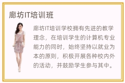 廊坊IT培训学校拥有先进的教学理念,在培训学生的计算机专业能力的同时,始终坚持以就业为本的原则,积极开展各种校内外的活动,并鼓励学生参与其中。It辅导班对同学的帮助一般都比较大,首先学校会创造一个很好的学习环境,让大家可以忘我学习,沉浸在其中。廊坊IT培训学校通过专业化的教学模式,以及合理的专业课程安排,使得学员们可以在较为轻松的环境下更快更好的学好专业。大家可以针对这些应用的领域反复练习,不断适应行业的变化和发展需要,争取更多进步。廊坊IT培训学校培养了一批一批优秀的IT人才,为国家的IT技术发展起到了一定的推动作用。廊坊IT培训学校的建立眼的便是为了能够帮助多一些的同窗把握古代热门的IT技术,为社会保送更多优异的IT网络技术人材。