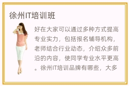 好在大家可以通过多种方式提高专业实力,包括报名辅导机构,老师结合行业动态,介绍众多前沿的内容,使同学专业水平更高。徐州IT培训品牌有哪些,大多数都会有不错的IT培训品牌成果,不过有一些品牌机构可能没有很好的发展方向,也没有办法制定科学的辅导方案,有时候还可能拖延学生的学习进度。it培训班就业率比较高,辅导机构可结合职业资格以及技术要求进行训练,除了提供许多主干理论课程外,还会介绍大量It应用项目,使同学更理解科技公司和企业应用的技能。IT专业有很多明显的优势和基础,许多学员在学习这些专业时,都可以有非常明显的技术成果,不过也有部分学员可能并不会有很好的成绩,主要就是没有太多时间去学习,或者是找到劣质的培训机构。