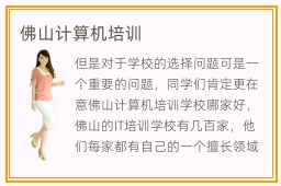 但是对于学校的选择问题可是一个重要的问题,同学们肯定更在意佛山计算机培训学校哪家好,佛山的IT培训学校有几百家,他们每家都有自己的一个擅长领域,用各有所长来形容最为贴切,谁也无法确定究竟哪家是最好的,只能说哪家更适合自己。佛山计算机培训学校是以一种小班教学的模式进行培训的,在这样的学习模式下也就不断拉近了师生间的关系,从而也促进了学员们更快更好完成专业的学习。佛山位于我国的佛山省,是佛山一个体口浩繁、经济成长的都会。计算机专业的学习并不容易,坚持是最基本,也是最关键的一点,选择靠谱的培训机构也很重要。若同学的计算机应用程序更好,或者数据分析能力有限,没有办法完成计算机专业工作的任务和要求,都可以参加计算机辅导机构的课程训练。