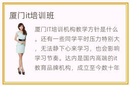 厦门IT培训机构教学方针是什么。还有一些同学平时压力特别大,无法静下心来学习,也会影响学习节奏。达内是国内高端的it教育品牌机构,成立至今数十年,在全国各个地区都开设了分校区,培养了一批又一批优秀的计算机专业技术人员。那末,你晓得厦门IT培训学校的讲授体例是什么样的呢。每个人的评判标准是不同的,因此对于靠谱厦门IT培训学校的定义是不同的,而师资力量、教学质量以及课程安排等方面都能成为影响厦门IT培训学校是否靠谱的因素。然而企业对于计算机方面人才的招聘也有一定的要求,经验丰富的资深程序员薪资待遇自然是很优越的。计算机行业的不断兴起,让国内各大企业都开始把目光投向it市场,都开始大量招聘优秀的it技术型人才。