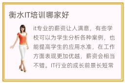 it专业的薪资让人满意,有些学校可以为学生分析各种案例,也能提高学生的应用水准,在工作方面表现更加优越,薪资会相当不错。IT行业的成长前景长短常喜不雅的,若是你也想投身于IT行业,成为一位IT精英,那末就来北京吧,这里会是你圆梦的处所。有些学生可能只有IT专业的理论知识学习,但是平常却缺乏正式的应用,也没有锻炼过自己的IT专业应用思维,当然就很容易影响IT专业以后的应用发展空间。所以,衡水it培训水平相对于国内而言还是比较高的,这就吸引了很多离衡水近的学生前往衡水it培训机构。IT专业的知识结构是很全面的,很多刚起步学员要想全面掌握,简直就是天方夜谭,应该要循序渐进,从零开始,学习简单的入门教学课程内容,然后再逐步提升,掌握更高端的IT专业技能,把握时代的前沿科技,在以后的IT应用中,始终能够看到自己的推动力量。