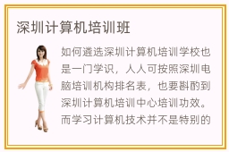 如何遴选深圳计算机培训学校也是一门学识,人人可按照深圳电脑培训机构排名表,也要斟酌到深圳计算机培训中心培训功效。而学习计算机技术并不是特别的容易就可以学会,得到一些专业的计算机培训机构去学习才可以快速的掌握计算机技深圳计算机培训学校情况术。作为深圳的发达城市,深圳选择把城市经济发展的重心转移到计算机科学方面,在不断膨胀的信息化科技时代,这显然是一个明智的选择。虽然培训班的资质非常不错,但是光靠这些成为一名优秀的计算机工作者是不太可能的,还需要自己的不断努力和自我总结,对自己要有一个定位,这样才会逐渐提升,直至达到自己的目标。深圳计算机培训学校是那种实力与机遇并存的优质培训机构,学校与企业的相关合作都是比较出色的计算机专业开发项目,如果能够提前进入这样的项目中接受实践的教学,想必就能够更快融入到以后的工作中去了。