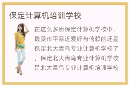 在这么多所保定计算机学校中,最受市平易近爱好与信赖的还是保定北大青鸟专业计算机学校了,保定北大青鸟专业计算机学校是北大青鸟专业计算机培训学校在保定开设的分校,建立之初就因为总部北大青鸟的好口碑顺遂招收了一多量学生。基本上每年都有新的变革,所谓变革就是整个行业有更大的变动,所以学生一定要重视时代的发展。保定计算机学校注重师生之间的交流,努力为学员营造一个平等教学、取长补短的学习氛围。保定计算机学校自从开办以来,造福了多少计算机专业的学生自然是不计其数,然而,计算机专业发展多年丝毫没有缩减衰退的趋势,所以,保定计算机培训学校一方面培训学生,一方面同样提升自己的教学水准。只要想学好计算机专业的来到保定计算机学校学习都会学到专业知识,临近毕业学校还会安排非常专业的老师对学生进行一对一指导就业。
