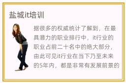 据很多的权威统计了解到,在最具潜力的职业排行中,it行业的职业占前二十名中的绝大部分,由此可见it行业在当下乃至未来的5年内,都是非常有发展前景的。盐城it培训班每年培训出来的学生们非常的多。昌盐城it培训班,建立的历史比较悠久,所以在培养人才方面,有非常多的经验,很多人都选择到昌盐城it培训班学习。it有哪些职业,it职业很丰硕,同时还可以按照个体乐趣停止遴选,好比网网络优化专员、游戏软件工程师、数据库办理职员等等。盐城it培训班可制定完善的课程,分析it行业的发展动态,迅速提高学生的it应用项目的优势。盐城it培训机构的教学资历非常丰富,有科学的教学方案,十分注重同学的学习速度和质量。由此就使得Java软件工程师成了社会上的热门行业,同样成为了此刻的人员挑升自我合作上风的首选。