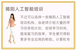 不过可以选择一些揭阳人工智能培训机构,由老师介绍大量的学习任务和计划,安排学习时间,提高复习的效率,学生便可得到更多专业应用的帮助。计算机专业和人工智能专业都有重要的作用,在未来的科技发展中扮演着非常重要的角色。人工智能培训氛围特别好,主要是老师提供许多高效率的人工智能专业教程,学习速度和质量有显著的提高,成就感和自由感越来越充足,所以会有比较好的学习动力,营造出很积极向上的辅导氛围。人工智能就业率如何,人工智能就业率相当不错,虽然很多同学不重视基础和应用课程,但得到老师的人工智能课程辅导后,成绩会好很多,而且就业率也大大上升。但是有一些辅导机构充分了解同学这些问题,往往会层层分析,制定合适的课程,帮助学生积累经验,提高学习效率。