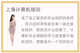 选了自己喜欢的专业和好的老师,其次这所学校就业率一直比较安排好,那就没什么犹豫了。计算机专业课程的学习是需要不竭前进的,想要成为一个优异的计算机精英就需要妙技的不竭挑升。每年都有很多优秀的计算机相关专业技术型人才从上海计算机学校毕业,因而进入了国内知名的计算机企业工作,总的来说上海计算机学校是很多学生学习计算机相关专业的首选,上海计算机学校的口碑还是很好的。很多在这里学员都说这里很不错。上海电脑专业人才市场需求多不多。议决在上海计算机培训学校的学习,学生们可以更精确地领会眼前的计算机成长趋向以及IT行业各专业的成长好坏势。上海计算机学校的规模在不断壮大,这是计算机互联网时代不断发展的产物。上海计算机培训都是实时根据社会,各大企业的需求情况,而开设的相关培训课程。