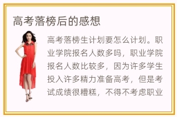 高考落榜生计划要怎么计划。职业学院报名人数多吗,职业学院报名人数比较多,因为许多学生投入许多精力准备高考,但是考试成绩很糟糕,不得不考虑职业学院,掌握某些热门技术,更快找到满意工作。高考落榜考生怎么办,高考落榜的考生可以结合自身的兴趣,选择对应的专业,找到合适的学校,从而优化个人能力,使就业优势更显著。而且不管选择哪一些学校,更注重的是个人的工作能力和表现,不要只是关注理论或者学历问题。许多女生在高考落榜时,会非常失望,没有太多兴趣爱好,所以在挑选专业时非常迷茫,不知道如何做决定。再根据国内各大市场的发展前景,选择一门适合自己的并且具有广阔发展前景的专业进行学习。女生高考落榜怎么选择学校,首先要看自己的分数以及定位,有些人只能上大专,还是要结合兴趣爱好选择合适专业类型,不要人云亦云。