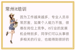 因为工作越来越多,专业人员非常厉害,如果个人能力不强,很难在岗位上竞争。it行业的发展机会特别多,同学们可以从事很多相关的行业,也能得到很好的发展,实现比较高的待遇。常州最好的IT培训学校。如果学生想要在这些专业取得更好的发展舞台,那么就要努力去学习,积累更多专业应用,而且也应该要不断去创新自己的知识,而不只是停留在以前的阶段和水平。it培训效果好不好,很多机构的教学效果都很不错,安排各种就业辅导项目、理论项目等,让大家在结合it行业的趋势的基础上进一步研究深层的知识。但是有很多学员可能都没有了解过IT专业学习内容,因此会想要选择优质的培训机构,优化技术应用的成绩。有很多人在家想自己学习IT专业可是看了好多这个专业的书感觉还是不懂好难学,其实不是的,IT技术是很好学习的但是自学不是方法得有专业的老师一对一指导你才可以的,而常州的IT培训机构里面的老师都是很有经验的,他们非常有耐心,在常州IT培训机构学习过的学员就没有不掌握这门技术的,在他们工作中也都很好的加以运用,所以啊学习IT技术还是得去培训班,而关于IT方面的培训班做的最成功的就属常州那边的IT培训机构,常州是一个古老的城市,这里不但环境优美物价还不算高,所以在常州报个IT培训学校还是值得的。