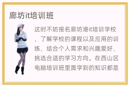 这时不妨报名廊坊港it培训学校,了解学校的课程以及应用的训练,结合个人需求和兴趣爱好,挑选合适的学习方向。在西山区电脑培训班里面学到的知识都是非常,专业的。it培训学费多少,取决于教学的方式,有的同学会选择it1对1教学,效率确实是很高,交流起来也非常便捷,大家可随时跟老师讨论,请教一些核心的问题。所以廊坊it培训it培训班班非常的不错。廊坊IT培训机构教学方针是什么。如果不知道怎么选择,笔者建议你选廊坊最知名的IT培训学校,这样会比较有保障。假如想找到好机构,需要具体看看这些课程的价值,分析学校的教育成果。廊坊it培训学校在培训人才方面有着非常多的经验,培训过的学员也非常的多。现在越来越多人选择it学校作为自己的求学目标,但是现在的学校类型确实是五花八门,如果没有找到适合自己的院校类型,那么大家尽量宁缺毋滥,不要随便选择劣质的选手,以免耽误自己的前程,也会浪费时间和金钱。