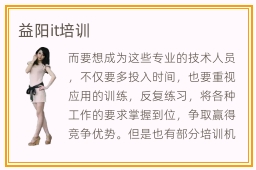 而要想成为这些专业的技术人员,不仅要多投入时间,也要重视应用的训练,反复练习,将各种工作的要求掌握到位,争取赢得竞争优势。但是也有部分培训机构的应用能力有限,专业水准不够高,学习的过程常常没有太多活跃的气氛,因此学生的学习动力就会下降,学习会变得更加枯燥无味。it培训的老师确实有很多有点,首先就是专业实力特别强,安排细致的课程,而且通过多元化的方案以及详细的案例分析,为大家讲解重要的知识领域。而最专业的培训班就是益阳it培训it培训班班。许多同学投入大量精力掌握计算机的知识,但往往只重视基础理论,没有真正重视应用,而且技术更新的时候也不及时补充,因此知识库的内容不够丰富,会导致就业竞争力不强。而益阳it培训学校就都特别的专业,培训过的学员都很好的掌握了it这门专业。