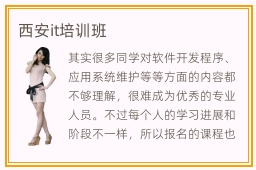 其实很多同学对软件开发程序、应用系统维护等等方面的内容都不够理解,很难成为优秀的专业人员。不过每个人的学习进展和阶段不一样,所以报名的课程也有所不同。it课程一般都比较复杂,要求比较多,有的同学刚刚接触,没有任何经验,还不太理解知识框架,不妨寻找西安it培训机构的指导,明确it课程的学习方向和学习任务,也许在短期内就能取得进步。学生们也能积累更多的计算机方面的实际操作经验。西安IT培训学校贵吗,大概的费用是3000到2万元左右,其实和大多数的培训学校都差不多,但是也不排除有些学校排名比较靠前,而且专业优势特别强,老师到水平更高,那么费用可能会有一点点上升。一些计算机专业的学生基础确实不是很扎实,或者学习态度不认真,一直都过于被动,不愿意主动去学习前沿的知识,会导致学习速度特别慢,成绩不理想,工作上也没有办法表现出个人的优势,容易被淘汰。