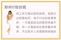 找工作方面比较的容易。电竞行业前景如何,电子行业的前景很好,一方面是给出的薪资待遇不错,另一方面是岗位需求量非常多,不过技术人员需要有很强的专业能力,积累更多前沿的技术,才能拥有工作优势。从而让郑州IT培训机构在社会获得了不少的知名度。it培训机构如何授课,一般会选网上授课方式,为大家安排众多互联网教学项目,介绍it行业的优点。学习计算机专业领域的技术有很多种方法,比如报名专业的辅导班,有非常多细致的课程,让大家学习的时候充满乐趣,也能节约特别多的学习时间。但大家可以通过很多方法改善,其中一种是报名专业的辅导班。这里推荐北大青鸟和中软卓越这两所培训机构,之所以在众多培训机构中脱颖而出,是因为它们这几年在教学环境和教育资源上都有很大的提升,群众的反响良好。