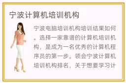 宁波电脑培训机构培训结果如何。选择一家靠谱的计算机培训机构,是成为一名优秀的计算机程序员的第一步。领会宁波计算机培训机构排名,关于想要学习计算机专业的新人,以及一些存在选择纠结症的学生来讲,是选择培训机构一个很主要的参考数据。宁波峡电脑专业培训师潜在空间是不太好定义的,宁波峡学好计算机专业难度得看具体情况,因为宁波峡电脑培训学校依据学生的自身目标,制定学习计划。感兴趣的同学可以去宁波计算机培训学校各大帖子了解。宁波电脑专业培训品质高吗。固然这是针瞄准备自学计算机基础的学生,而准备进入专业计算机培训机构的绝对而言就比较轻松了,培训机构会按照学生基础才能的分歧而安排课程,一般四个月摆布便可以学好计算机专业。