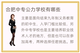 主要是面向结束九年制义务教育的初中生,入学门槛比较低,另外中专学校也是主要培养职业技术人才的地方,但是也可以在参加高考,两种选择任君挑选。那么,合肥中专学校的口碑怎么样呢。合肥中专学校哪些含金量高,可以多关注经验丰富的学校以及大型的学校等等,有些学校的教育背景往往能够反映出教学的资历和经验,如果有些学校是政府支持或者是政策机构,那么往往含金量会高很多。而且合肥中专学校学生水平都是比较好的,也有不错的实践机会,学校的设备往往会更加丰富。另外中专学校也注重学生的就业情况。对于合肥中专学校的专业教学质量,大多数人还是保持着怀疑的态度,总认为合肥中专学校的专业教学不可靠,在合肥中专学校是不能进行很好的专业学习的。