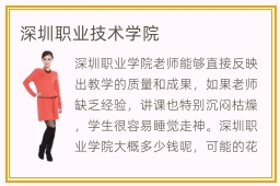 深圳职业学院老师能够直接反映出教学的质量和成果,如果老师缺乏经验,讲课也特别沉闷枯燥,学生很容易睡觉走神。深圳职业学院大概多少钱呢,可能的花费是3000到2万元,但要看个人所选择的专业类型,如果选择一些更加重视实践的课程,包括电子计算机或者是人工智能等等,那么费用会更高。深圳职业学院配套通常是非常完善的,可以针对学校的各种专业配套先进的设施,那么这样子学生就可以在实践中学习掌握专业的知识技能,从而在就业的环境中依然能够独占鳌头。深圳职业学院资源也是非常充足的,尤其是配套设施以及实训基地等等,如果能够找到这方面的学校,那么学生会有更多实践的机会,效果更突出。深圳职业学院他们建校历史悠久在培养人才方面有着非常多的经验。