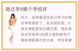 总之,选择最适合自己学习的培训学校就好了。在后续阶段,it培训课程更加注重应用,因此老师会把很多it应用方面的指导方案和课程展示给大家,学生掌握后,应用能力往往显著增强,信心也会逐渐提升。所以很多想要学习电脑技术的学生都到宿迁的电脑学校进行学习。宿迁it培训机构有很全面的教学方案,而且会突破传统教学形式的限制,采用多方位的教学形式,从多个方位为大家详细讲解计算机专业领域的技术。it培训班的好处主要是目标严谨,教学思路清晰,教学的水平很高,老师的讲课重点也非常鲜明,所以学生总是可以看到非常好的收获,对个人的未来也充满期待。It行业的发展怎么样其实要看两个因素,一个是产业的变化,另一个是市场的需求。
