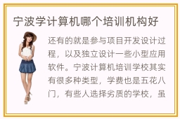 还有的就是参与项目开发设计过程,以及独立设计一些小型应用软件。宁波计算机培训学校其实有很多种类型,学费也是五花八门,有些人选择劣质的学校,虽然费用比较便宜,但其实很难保证教学的成果,反而会带来很多副作用。那末宁波有哪些比较靠谱的计算机培训学校呢。宁波电脑培训班学费一览表。宁波计算机学校就是这样一个不论是从口碑,还是师资水平以及就业保障等各方面都很适合大家学习的地方。遴选培训机构需要谨严选择,需要擦明眼睛。宁波计算机培训机构排名的可信度极高,学生们为了能够有进一步的学习延伸,往往会进入相关的培训学校去接受更高一层的深造,因为科技在进步、社会在进步,如果不进,则退。在关肥计算机培训学校学习计算机相干专业学习会轻易点吗。