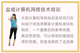 太阳计算机学校排名是学员们在纠结于该选择哪家计算机培训机构时,一个重要的的参考依据,真实性很强,可以有效的缩减选择的范围。若是选择的了这类靠谱的培训机构信任关于专业的学习是很有帮助的,也就大大保证了将来问题。盐城计算机培训班招生情况好吗。那么,盐城计算机培训学校有哪些好口碑的呢。所以越来越多的人想要学习电脑技术,也都选择了到盐城计算机学校去进行培训学习。计算机学校严不严,大多数培训班都很严格,学生应该按时认真完成老师的任务。盐城计算机培训学校班培训设备非常的先进,提供给学员们非常好的学习体验。盐城计算机学校成立至今多年一直在为改善目前计算机行业人才难求的现象做努力,开设了丰富多样的专业课程供学员们选择,并且大量招聘高超技术、经验丰富的教学团队来进行专业化的课程培训。