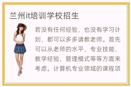 若没有任何经验,也没有学习计划,都可以多多请教老师。首先可以从老师的水平,专业技能,教学经验,管理模式等等方面来考虑。计算机专业领域的课程项目比较多,一部分同学因为思路不清晰,找不到突破口,学习时间也很有限,所以理解不够透彻,学习的进展也特别少。所以想要学好计算机技术就去兰州it培训it培训班学兰州it培训班怎么样习。IT培训前十强学习方式可能会选择应用和理论结合的方式,让学生可以更快适应这些专业的应用,也能了解各种理论的知识培训。正因为如此,很多人都打算深入学习计算机知识,大部分人都选择去兰州it培训进行计算机培训,因为兰州计算机培训水平很高。另外老师对同学的要求也相当严格,每个阶段都有课后检测和练习,使学生掌握更加充分。