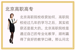 北京高职院校收获如何,高职院校经过几年的学习之后,其实收获还是挺大的。北京高职院校是通过自己的专业化教学,顺利赢得了良好的教学口碑。那么问北京高职院校怎么样,笔者这里告诉同学们,北京市内的高职院校都是非常不错的;无论是教学质量还是学校整体口碑上。传授给学生们的都是专业性的知识和技术。北京高职院校相比其他高职技术培训学校存在着一定的优势,那么这些优势是什么呢。贵北京职院校的培训成果是公开透明的,学生家长们完全可以参考学校的培训效果。这些专业大多为三年制,当然也有少数专业定位两年制,两年后即可毕业颁发大专学历证书。那么,北京高职学校有哪些比较靠谱的呢。那末,北京高职院校在专业课程讲授方面有哪些绝对于其余高职技术培训学校的上风呢。