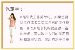 IT培训找工作简单吗,如果想要找工作或者是提高自己的工作技能,那么IT培训机构就是很不错的考虑,可以改进人们的学习目标和发展状态,应用的水平也更上一个台阶。从基础it知识开始学习,不断训练,紧凑的课程安排让学员有机的把握学习时间,在最快的时间内,更好的学习it技术。it好就业吗,it行业非常好就业,因为这些行业的发展前景很不错,而且计算机专业应用会影响人们的生活各个方面,有非常大的发展潜力。其次,可以在网络平台向老师请教,不用面对面交流,有利于减少压力。保定北大青鸟,保定新华电脑学校,中软卓越等,那么这些保定it培训it培训学校学习内容主要是什么呢。it培训机构有哪些应用,it应用的领域很广,比如可以用于人工智能、计算机科学以及软件开发、程序应用等等。