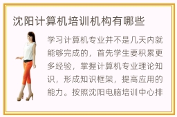 学习计算机专业并不是几天内就能够完成的,首先学生要积累更多经验,掌握计算机专业理论知识,形成知识框架,提高应用的能力。按照沈阳电脑培训电脑培训中心排名,我们但愿能够遴选到合适本身的,有专业合作实力的计算机学校来足足本身的成长需求。沈阳计算机培训机构学习代价大吗。另外,随着互联网时代的来临,计算机相关职业岗位也是广大群众就业的热门选择。所以掌握一门非常吃香的技术还是比较重要的。计算机行业就业率相当不错,很多计算机专业学生经过几年的训练后,大大提高专业的实力和工作的应用水平,找工作基本不成问题。计算机行业的招聘信息我也是看到有很多的,而且这方面的薪资待遇还是很高的,起步薪资都在五千呢,资深级别的专家那就是五位数的薪资了,看着还是很让人羡慕的,所以呀,对应的这类计算机培训学校就很多了,大大小小的各种宣传,相信你也遇到过这种情况,某计算机培训机构的传单派发,沈阳计算机培训机构也是其中之一吧,不过也不排除有一些培训机构还是可以的,至于你问得沈阳计算机培训机构哪一个教的好这个问题,怎么说呢,每个人对好的看法不一样,带有主观性,不好推荐的,我建议去网上看看学校口碑怎么样,我之前听过北京北大青鸟这个学校,不知道沈阳计算机培训机构有没有这个学校,还有什么传智学校的,一般报名费是几千块钱吧,不过最近好像都在一万多,说是涨价了,我想沈阳计算机培训机构也是涨价了,不过也是在这个范围之内的,如果报价差太多,那就不靠谱了沈阳计算机培训机构就我看到的就有好几个呢,像什么北大青鸟学校,传智黑马也是大家知道的吧,我就不一一列举了,沈阳计算机培训机构网上有排名的,或者你根据专业选择学校也是可以的,你可以先参考一下排名靠前的几个,然后一个个去了解一下他们实际情况,毕竟网上看到的也有不真实的信息,沈阳计算机培训机构报名没有什么特别要求,初中毕业就可以去啊,性别现在也没有啥限制,如果之前有计算机方面基础知识也是不错的,学起来容易掌握,后期有实习机会,实践和理论知识结合,毕业就业问题不大的,现在这类培训机构收费标准都在一万左右吧,也有人说现在涨价了,毕竟物价上涨趋势各行各业都在涨价,我想沈阳计算机培训机构收费也是这个范围,如果哪一个培训机构收费超过很多,那就不靠谱了。