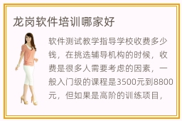 软件测试教学指导学校收费多少钱,在挑选辅导机构的时候,收费是很多人需要考虑的因素,一般入门级的课程是3500元到8800元,但如果是高阶的训练项目,收费可能会上升。软件测试与开发前景怎么样,行业很好,工作待遇高,机会也很多,发展空间大。龙岗软件培训班整体的氛围很活跃,同学之间的交流机会非常多,而且老师鼓励大家在课堂讨论,只要有问题都可以提出,然后大家一起解决,从而营造出很好的学习气氛。但辅导机构会更加侧重应用的教学,介绍很多应用方面的技能,使大家的应用价值更高。软件开发培训简不简单,部分机构的课程内容是比较简单的,也有很便捷的学习技巧,因此学生可以不费吹灰之力就能够学习更多知识。但大家不必灰心,毕竟这些是暂时的,只要找到靠谱的龙岗软件学校,由老师来制定严格的软件训练课程,解决软件应用的难题,工作能力会更强。