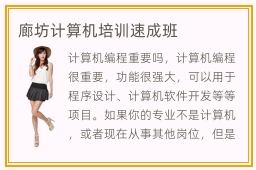 计算机编程重要吗,计算机编程很重要,功能很强大,可以用于程序设计、计算机软件开发等等项目。如果你的专业不是计算机,或者现在从事其他岗位,但是打算今后从事计算机,那么建议你最好找一家廊坊计算机培训学校学习。廊坊IT培训教育中心培训理念比较先进,廊坊电脑培训中心的辅导老师以学生的就业任务为教学目标,实现学生全方位发展。廊坊这个城市不论是交通,还是经济发展等各个方面,都是国内其他城市都远不及的。若同学的水平比较强,老师也会介绍很多高级的训练课程。其实,在廊坊,电脑培训学校并不会很贵。廊坊计算机培训机构一般都采取小班讲授如许的先辈的教育形式,加倍包管了学生的坚苦迷惑可以在第临时间内获得处理,在专业团队的指点培训下,我们的学习状况可以获得较着的改良,学习乐趣也会较着挑升,选择廊坊计算机培训机构,没错的。