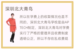 所以在学费上的收取情况也是不同的,深圳北大青鸟学校是由APTECH制定,深圳北大青鸟对学费实行了严格的管理并且收费制度透明公正,所以不存在乱收费现象,这一点大家可以放深圳北大青鸟在哪心。用人单位才会放心。而在深圳北大青鸟学习过的学生。北大青鸟的教学环境非常好,首先就是资源丰富,教学速度比较快,同学更加积极主动,对北大青鸟的学习过程也充满着信心。北大青鸟电脑学校保证了学员的就业率,为学生毕业后出去工作提供了保障。在it行业中的高薪职位有:软件工程师,网络工程师,大数据构架师等it热门职业。深圳北大青鸟始终相信只有好的优秀的老师,才能教出优秀的学生。北大青鸟指导能力非常强,首先可以帮助学生分析学习过程遇到的问题,然后再加以有效的调整,弥补学习过程的短板,突破各种学习的弱项。