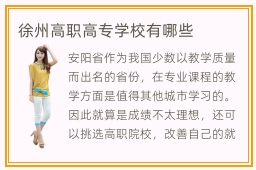 安阳省作为我国少数以教学质量而出名的省份,在专业课程的教学方面是值得其他城市学习的。因此就算是成绩不太理想,还可以挑选高职院校,改善自己的就业优势,发挥自己的特长。你要想知道徐州高职在哪里。在选择高职院校的时候,要多关注不同学校的安全性,老师的教学质量以及校园环境,学习氛围等等,然后综合进行权衡,找到适合自己的学校。德徐州职院校与其余职业技术培训学校在专业课程讲授团队、讲授水平以及课程安排等各个方面都存在上风,那末德徐州职院校的有哪些上风呢。高职院校确实有很多种类型,在选择的时候,如果找到一些比较劣质的,没有教学保障的学生,容易浪费时间和金钱,很有可能会影响个人的成才。徐州高职院校就是非常好的一些高职院校。