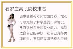 如果选择公立的高职院校,那么可以更加了解学生的口碑情况,从而针对自身的专业能力,找到适合自己的学校,让自己变得更加优秀。石家庄高职学校为了改良这一情况,特意为行将结业的同窗开设了相干专业就业指点课程。衡石家庄职院校价格总体来说并不是贵,主要看5000到2万元左右,要看个人选择的专业类型,比如有些专业是比较贵的,包括金融,电子科技,电子商务以及计算机网络等等,而且这些专业相对来说也比较热门。大多数人选择石家庄高职院校主要就是为了找到好工作,也希望能够学习一己之长,充分发挥自己的优势,改善自己的专业程度。石家庄高职能找哪些工作,一般是基础性很强的工作类型,包括电子计算机应用或者是软件开发等等,薪资水平也非常不错,但整体的课程比较枯燥,要看下自己到底有没有兴趣。