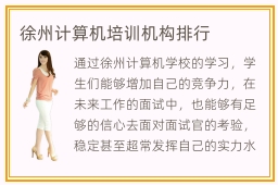 通过徐州计算机学校的学习,学生们能够增加自己的竞争力,在未来工作的面试中,也能够有足够的信心去面对面试官的考验,稳定甚至超常发挥自己的实力水平。徐州计算机学校议决计算机专业的培训讲授,能够熬炼学生的计算机基础才能。计算机呀的学习体例一般有两种,一种是议决浏览学习计算机专业图书资料来学习的自学体例,另有一种是进入专业的计算机培训学校接管正规的专业课程培训,两种体例各具优弱点。徐州计算机学校在成立之初就打着服务学生的名号,通过不断地帮助学生寻找学习的乐趣而提高了学生们的学习质量,保证其高效的学习状态。徐州计算机培训多少钱。不过,如果选择了一所好的计算机培训学校,也可以使我们事半功倍,更快的学习计算机知识。