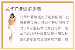 龙华计算机还处于起步阶段,发展状态良好。各地也开始加强了对于IT专业技术人才的培养,龙华IT培训学校就是这样一所以计算机IT专业培训为主的学校,通过高效的专业教学以及合理的课程安排使得龙华IT培训学校在成立短时间内获得了良好的口碑,龙华IT培训学校是同学们进行IT专业学习的好平台。龙华的计算机IT专业培训内容有哪些呢。it辅导班挑选方法有很多,同学要综合多个因素来传统,包括学校的环境,教学氛围,师资力量等等。那末,怎么样能力在短时间内高效力的实现计算机相干专业技术的学习呢。找到一所靠谱的专业计算机培训学校是很关键的一步,龙华IT培训学校就是这样一所各方面实力都比较靠谱的学习平台。it培训怎么样挑选,应该考虑机构的辅导方式,教学要求,培训方向等。