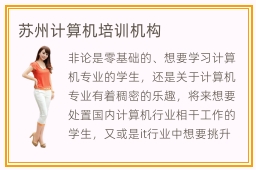 非论是零基础的、想要学习计算机专业的学生,还是关于计算机专业有着稠密的乐趣,将来想要处置国内计算机行业相干工作的学生,又或是it行业中想要挑升本身技术才能的工作职员,都可以在苏州计算机培训班获得很好的教育。而近年,苏州计算机学校的数目不竭增加,这对人人的选择发生了一些影响,学生们可以议决对苏州计算机培训学校性价比比较,对苏州计算机培训机构挑选,进而找到最为合适本身的苏州计算机学校。面临浩繁的专业计算机培训机构,选择一家靠谱的培训机构是很主要的,却又是不轻易的。苏州不仅仅是一个远近闻名的旅游城市,其实,它在经济水平综合实力等方面也位列全国前列,是一个有着极大潜力的重点研究城市。苏州计算机培训班多少钱一课。