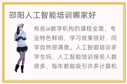 有些ai教学机构的课程全面,专业特色鲜明,学习效果很好,同学自然很满意。人工智能培训多学生吗,人工智能培训报名人数很多,每年都能吸引许多计算机专业学院。如果想要保障教学的质量,可以找高水平的培训机构,往往效果也会更加理想。为了得到许多改善,同学不妨请教优质辅导班的老师。ai有前程吗,这个专业的前程很好,工作机遇很是多。邵阳人工智能培训氛围好吗,很多学校的学生都有很强的目的性和规划,希望能在人工智能培训一段时间后,改善自己的能力,整体来看学习氛围都很柔弱。邵阳人工智能培训学校主要培养的是同学的思维能力和动手能力,激发学生想象力和创造力,让每一位学生都能了解人工智能的魅力所在,也能够开拓更广泛的思路,以后就算离开辅导班,也可以得到很多进步。