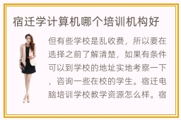 但有些学校是乱收费,所以要在选择之前了解清楚,如果有条件可以到学校的地址实地考察一下,咨询一些在校的学生。宿迁电脑培训学校教学资源怎么样。宿迁计算机培训学校因为拥有多年的教学经验,已经在国内的培训机构取得了一席之地,宿迁计算机学校的培训效果有显著的效果,学生们学习到的不仅仅是有计算机理论知识,而且还包括了一些实践项目的能力拓展。当然要想取得更长远的竞争优势和进步,应该要努力准备,与时俱进,关注更多前沿的知识。那么,你知道宿迁计算机培训学校的排名顺序吗。宿迁计算机学校靠不靠谱的,宿迁计算机学校学习压力大不大,因为现在学习计算机专业的人实在太多了,所以学习压力必然会比其他专业的学生多一点点,但有压力才有动力,大家要利用这些良好的压力,不断的提升自己的能力,这样未来才可以不断的改善自己的就业发展水平,也能保障良好的物质条件。