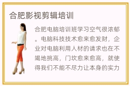 合肥影视剪辑培训