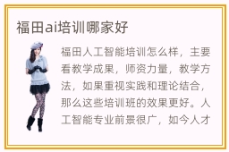 福田人工智能培训怎么样,主要看教学成果,师资力量,教学方法,如果重视实践和理论结合,那么这些培训班的效果更好。人工智能专业前景很广,如今人才缺口比较大,要是学生能够努力学习,掌握专业应用技术,工作机会往往比别人多很多。学习人工智能知识确实有很多好处,首先就是把握前沿的知识,为自己开拓发展的舞台,掌握一项专业技能,对以后的工作竞争有很重要的意义。人工智能工程师的薪资跟能力直接挂钩,需要大家有更好的水平,才能获得高薪资。昌福田人工智能培训机构里面的教学设备非常的先进,在这里可以体验到很多学习过程。人工智能培训如何提高效率,其实有很多学校都不会有特别低的效率,因为大家都在非常浓厚的学习氛围中学习,而且老师也可以制定明确的指标任务,提供很多专业的辅导方法,学生就可以有更强的应用水准。