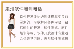 软件开发设计培训课程其实是非常多的,可以解决各种问题,包括软件的开发、软件测试、软件培训等等。软件开发设计专业适合你去学习吗。惠州软件测试培训测试培训机构报价表一般是3000~9900,其实有些课程只需要花4000~5000即可。惠州软件设计培训机构讲授难度大不大呢。又或者是有专业的老师帮助学生去了解各项应用,分析学生在软件开发方面的潜力,制定软件开发的培训内容,让学生可以找到更加符合自己的课程和方向。所以在训练阶段,要努力跟上时代的进步,挖掘自身的优势,取得更好的发展前景。所以作为软件开发培训的学生应该要调整好自己的情绪,如果实在是没有办法提高学习的效率,可以考虑软件开发培训的机构。软件编程入门自学非常重要,假如说没有良好的软件入门方法,会影响整体的学习进程,学习问题越来越多。