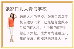 培养人才的学校。张家口青鸟学校自建校以来,已经培养出数不胜数的IT人才,为中国的IT行业做出了贡献。北大青鸟随着这几年的发展,规模越来越壮大,分校可以说是遍布的中国版北大青鸟平张家口校区办学宗旨图。让学生得到了更好的学习体验,更加喜欢学张家口北大青鸟学费怎么样习。到底贵不贵呢。那就会觉得这点学费其实也算不了什么。张家口北大青鸟学校学员方案是什么呢。感兴趣的同学会比较好奇张家口北大青鸟学校课程研发团队和研发的课程。而张家口北大青鸟确实是一所特别专业的学校。老师们负责,学校也有负责。他们平时,都在学习专业课程。在这里学习的话,确实非常的轻松,就业方面也是有保障的,在这里真正能学到专业性的知识。学生们在张家口北大青鸟怎么样学习,可以体验到非常不错的学习过程。