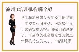 学生和家长可以去学校实地考查,学校专业很齐备,网络软件设计营销安卓JAVA。那么问题就来了。而当今的社会最吃香的就是计算机行业的人才。it培训班哪些好,选择基础辅导班应该从多个角度综合分析,包括学习的课程,老师的专业水平以及学校的侧重点、教学资源等等。如果大家感兴趣,都不妨报名这些辅导机构的课程。因此建议新手最好选择一家徐州IT培训学校系统专业的学习。其实,很多同学上课不认真,选择小班课程后,老师会有更多精力照顾同一个学生,制定个性化教学计划,真正做到因材施教。但是计算机技术并不是很简单就能掌握的。徐州it培训学校可以帮助同学突破很多专业方面的瓶颈,挖掘专业的漏洞,大家在学习的时候会有更大的提升。