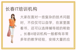 大家在面对一些复杂的技术问题时,不仅仅可以自学,在家里面看书,还可以选择辅导班的帮助。长春it培训机构一般都有非常多年的教学经验,安排大量的应用课程,帮助学生进行辅导。长春it培训班有很完整的教学体系,培训内容非常齐全,不管是计算机理论,还是计算机专业应用,都有很高的标准。另外有些学校属于小班教学,老师能够针对性找到学生的缺点,更快加以矫正,能力更快得到提高。IT培训口碑怎样,如果比较好的口碑,那么说明这些机构的优势明显,也能符合学生的需要。很多同学因为学习高难度的知识,超过自己的认知能力,会有一点点灰心,但是老师会通过多层次的训练,让同学从简单的内容,到高难度的知识,一步步获得提高。如果发现个人与时代脱节,没有办法掌握深层次的前沿知识,可以与老师多多讨论,迅速找到突破口。