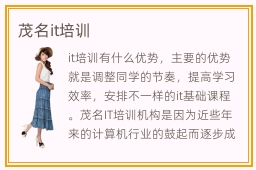 it培训有什么优势,主要的优势就是调整同学的节奏,提高学习效率,安排不一样的it基础课程。茂名IT培训机构是因为近些年来的计算机行业的鼓起而逐步成长鼓起的,按照热度延续居高的IT行业来看,茂名计算机培训学校还是有很大的成长前进空间的。而且老师也尤为有耐心,把毕生所学传授给学生们。因此学习互联网专业在如今这个社会是相当吃香的,而茂名又是个经济发达的地区。有些同学感觉自己在这些领域的能力不是很强,所以会报名辅导班,希望获得更多进步。怎样的学习可以有效的落低专业技术学习难度呢。那么,这么多茂名IT培训学校该怎样选择适合自己的呢。尽管如此,每年却还是会存在着很多计算机专业的学生失业的情况,茂名IT培训学校为了更好的解决学员们的失业问题,对于茂名IT培训学校的在校学员做出了相应的就业保障。