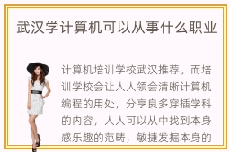计算机培训学校武汉推荐。而培训学校会让人人领会清晰计算机编程的用处,分享良多穿插学科的内容,人人可以从中找到本身感乐趣的范畴,敏捷发掘本身的潜力。武汉计算机学校每年的培训人才很多,那么武汉地区学好计算机网络容易吗。这些武汉计算机培训学校教学特色主要有:面授教学的小班制,一个老师带班人数比较少,这样有助于对学员进行集中而又专业的教学。要说在这么多武汉计算机学校中哪所专业计算机培训学校专业性更强、教学质量更高。学校选好了专业也会学的更快。武汉计算机练习武汉碑怎么样呢。计算机学校严格不,计算机学校的教学辅导是比较严格的,许多学生在计算机专业领域缺乏应用机会,没有成熟的专业实力,辅导机构都会为大家进行弥补,制定应用方面的课程。